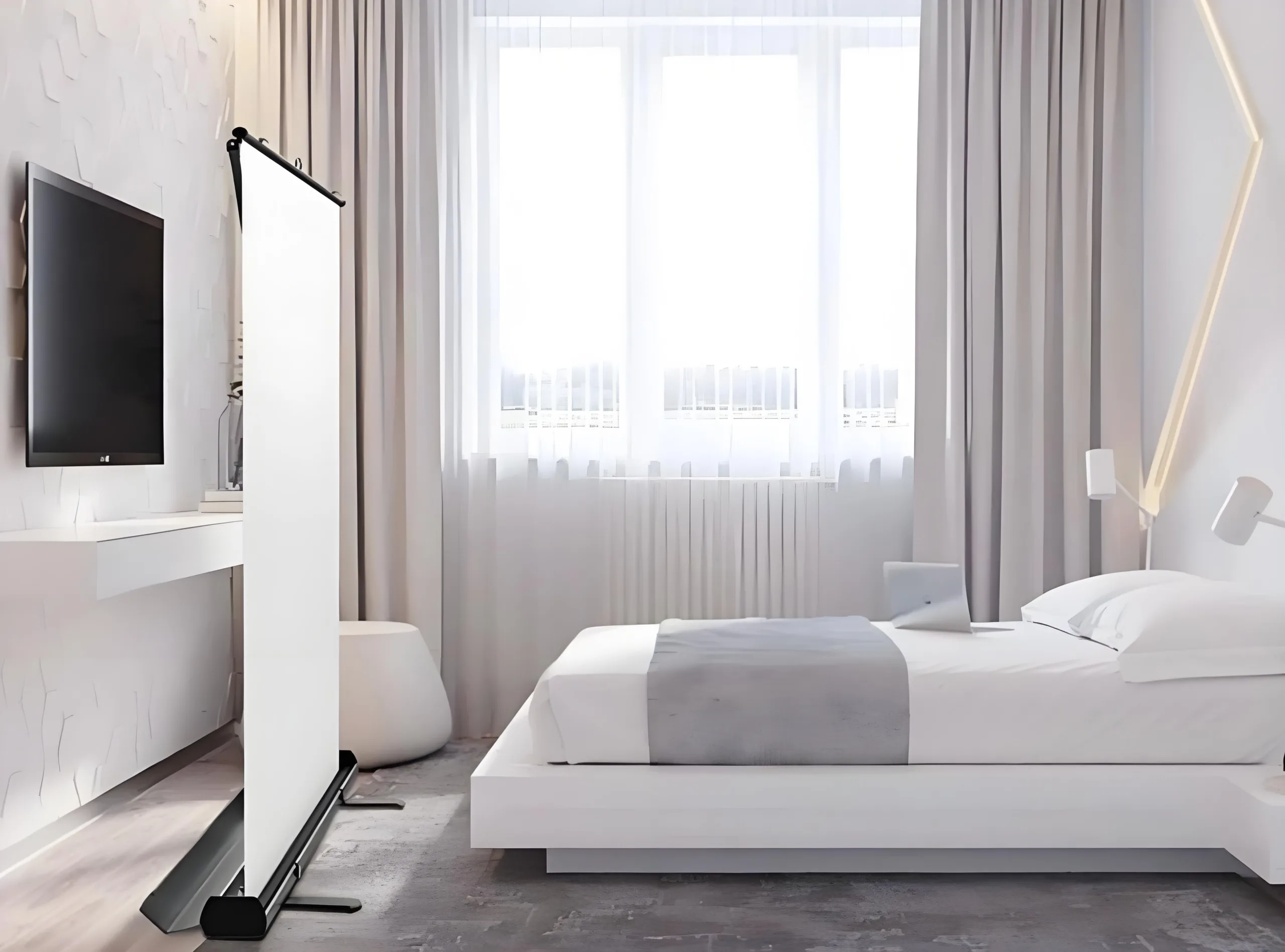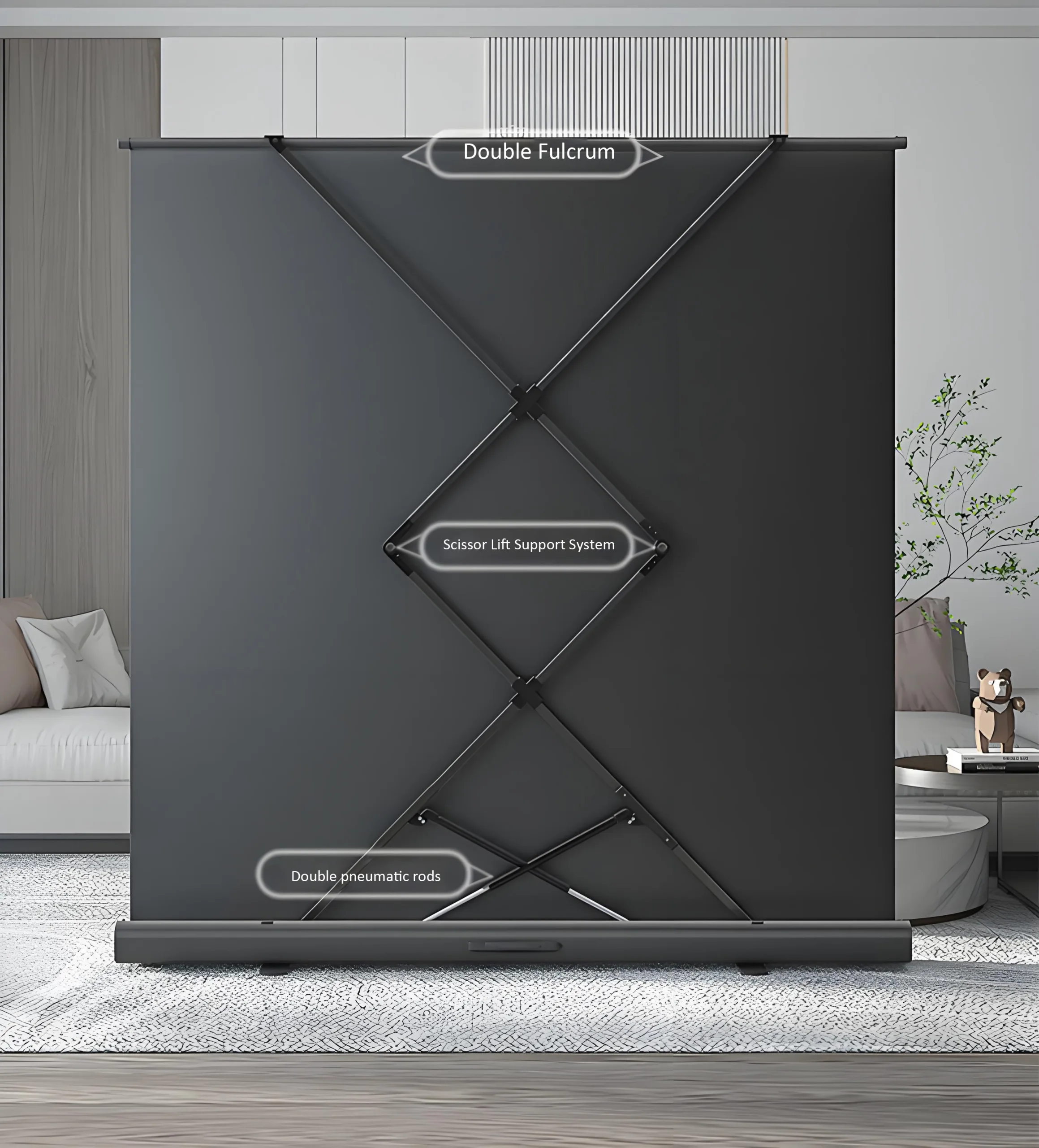 Built-in support legs ensure a taut, flat screen without external fixtures or wall mounting.