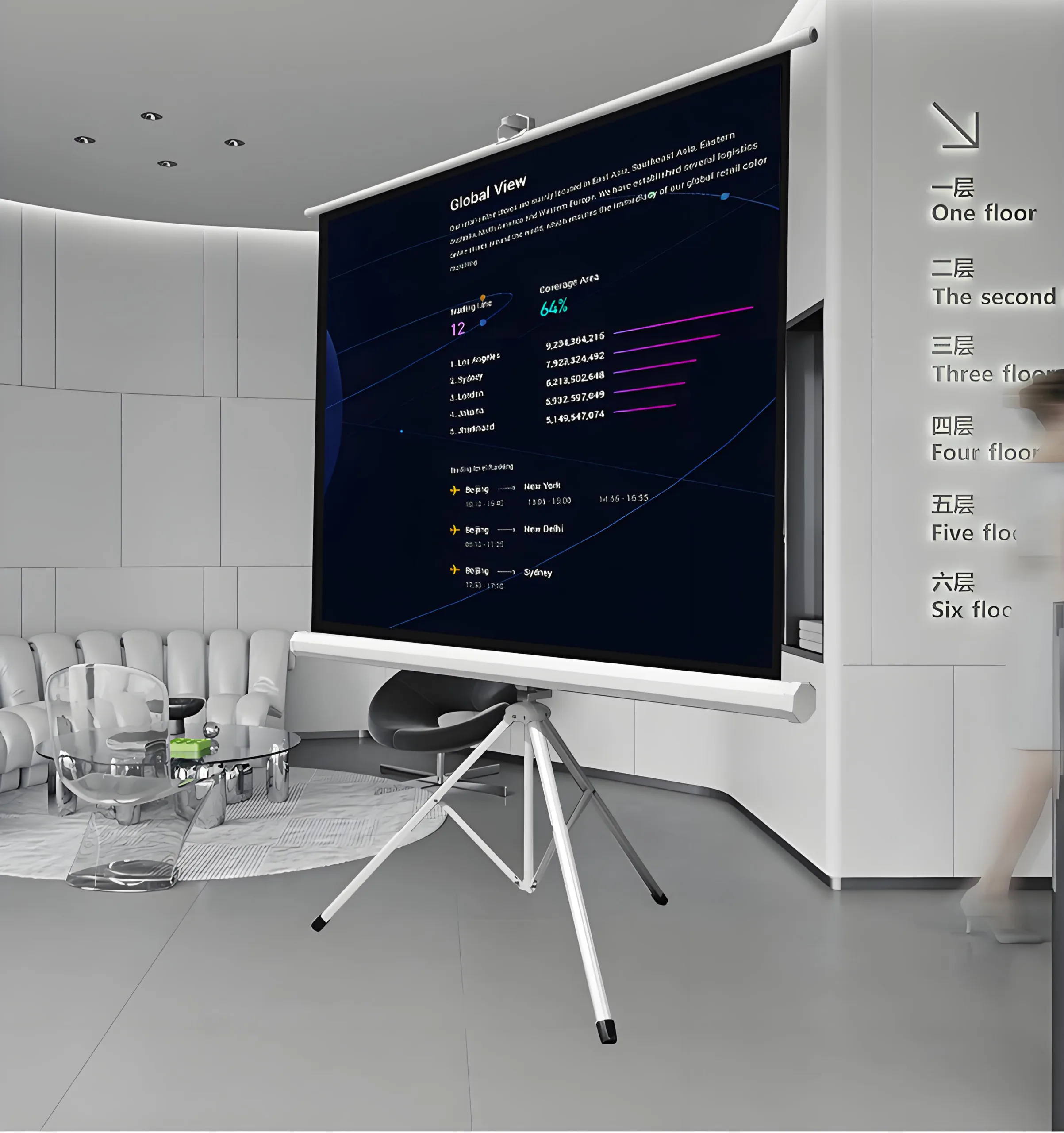 Our portable tripod projector screen combine practicality with performance, making them essential tools for anyone needing a reliable and flexible projection solution.